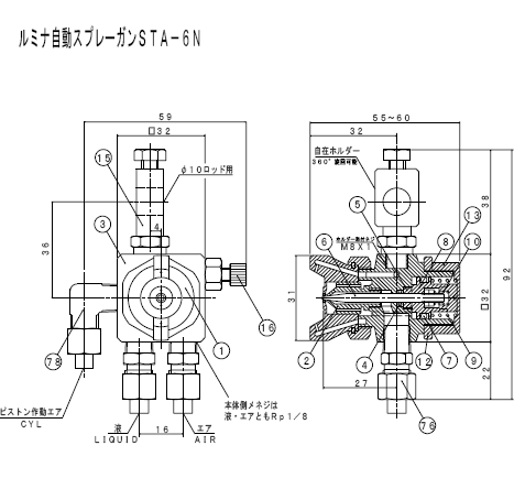 四、日本扶桑精机FUSOSEIKI自动喷头STA-6N产品尺寸图: